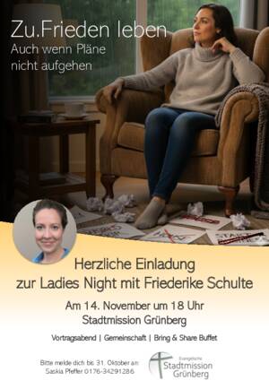 Herzliche Einladung zur Ladies Night mit Friederike Schulte zum Thema: "Zu.Frieden leben - auch wenn Pläne nicht aufgehen."